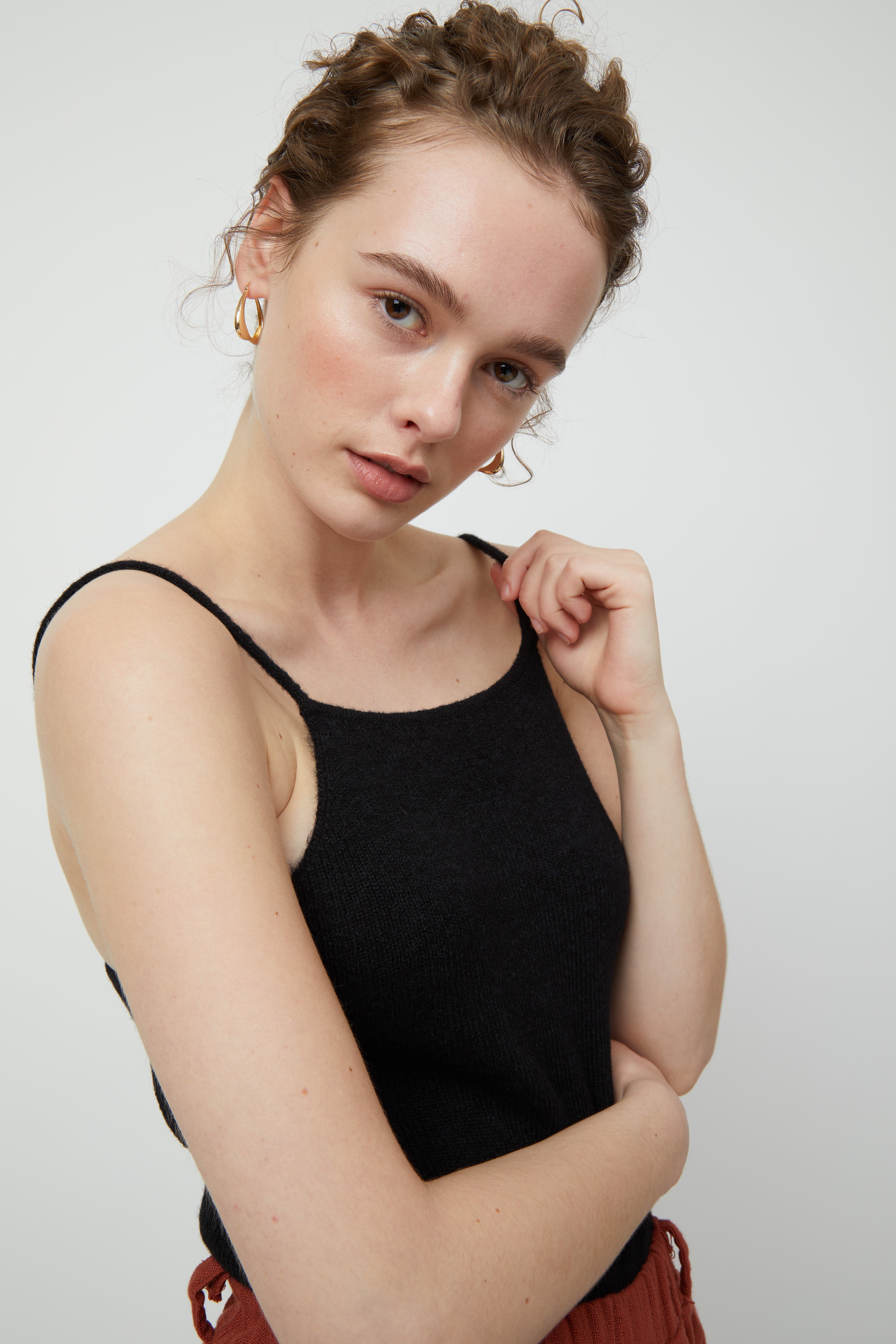 ハイゲージ アルパカを使用したミニマルなボディ。このスリム ニットは、Atelier Delphine の秋のワードローブの基本となる衣服です。