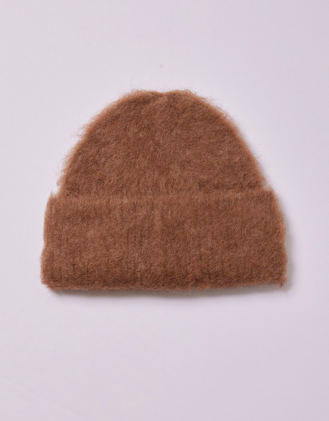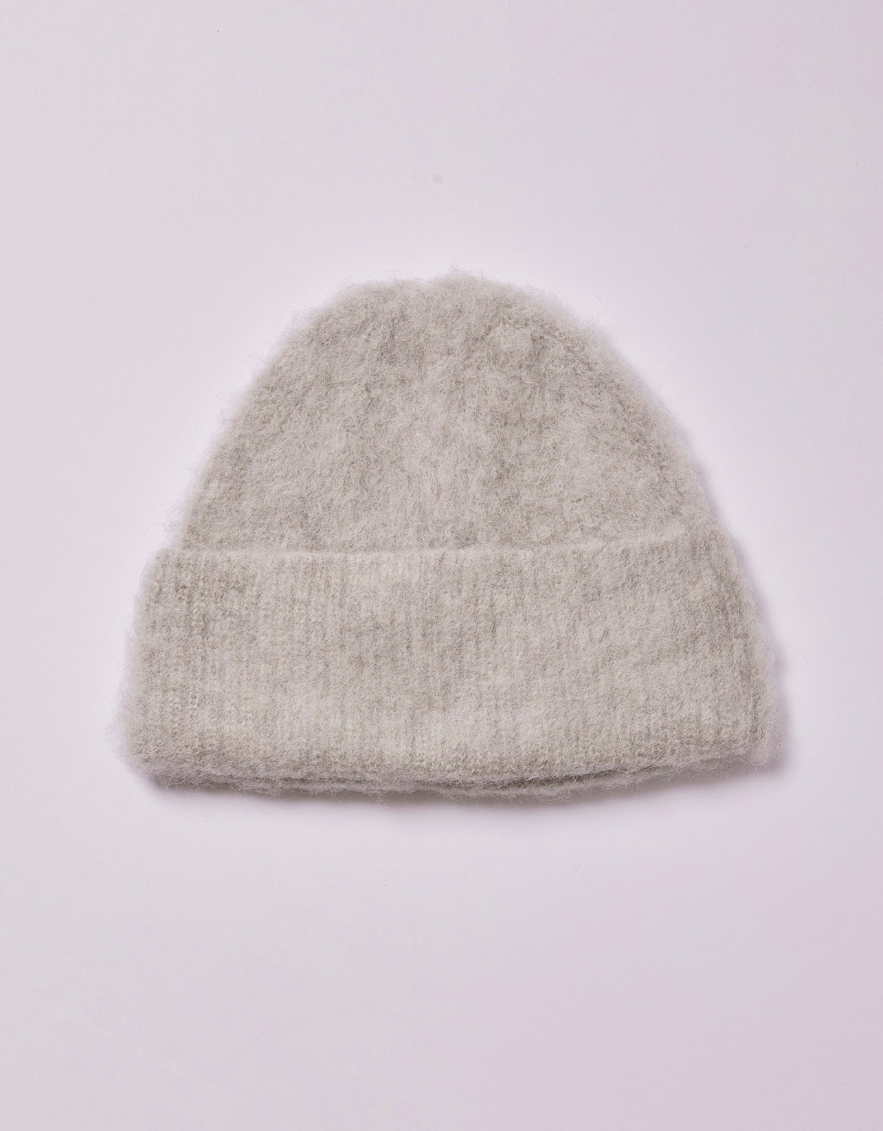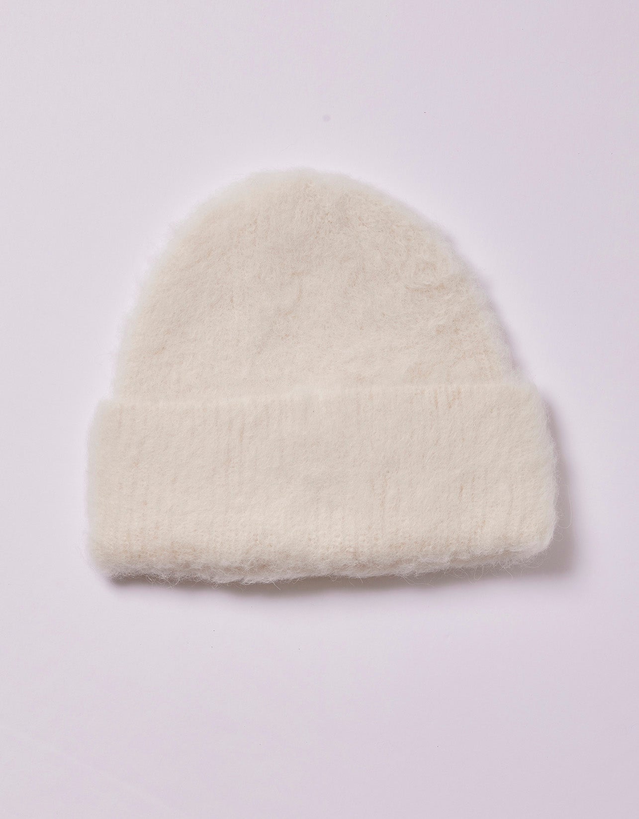 Ribbed folded brushed beanie in Atelier Delphine's most iconic baby alpaca yarn. Wear with your Balloon Sleeve Sweater or Haori Coat for coordinated cozy.