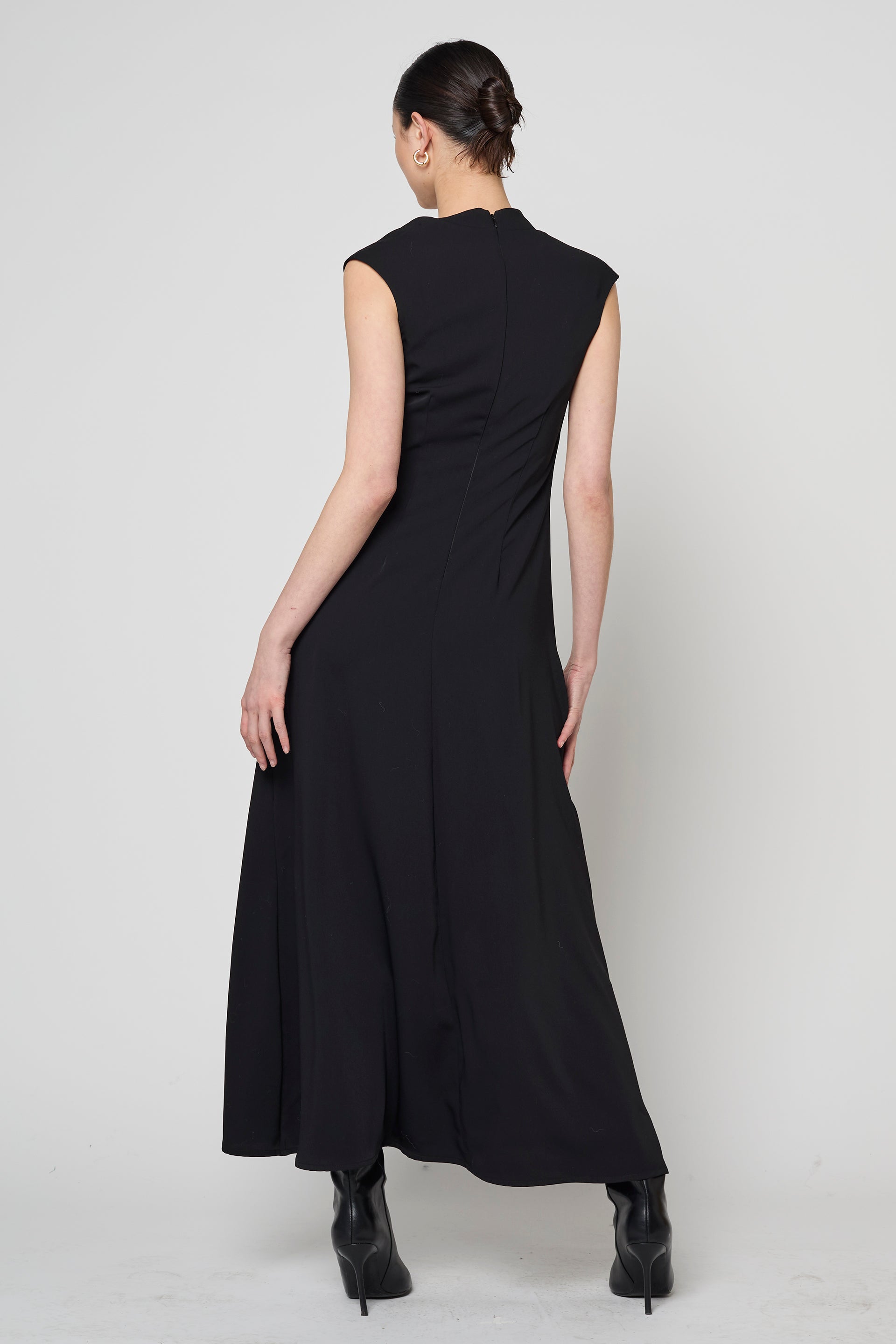 The Lena Maxi Dress, a quietly striking silhouette that balances edge and elegance. Designed with a sculptural asymmetrical neckline and a delicate crossover strap that gently frames the collarbone. The relaxed A-line shape falls to a fluid maxi length, offering an effortless drape that moves with the body. An elevated essential that shifts gracefully from special occasions to the softness of everyday wear.