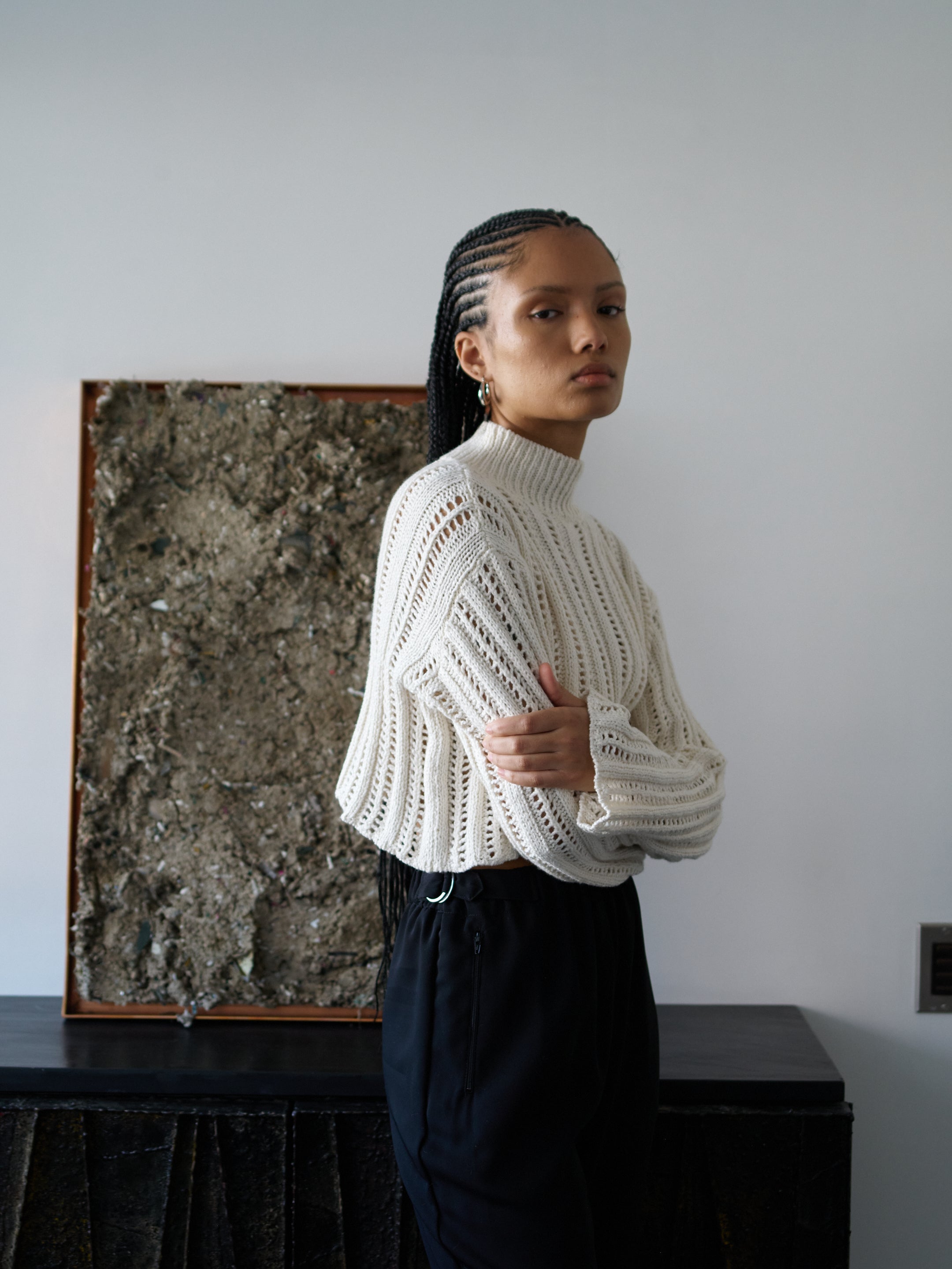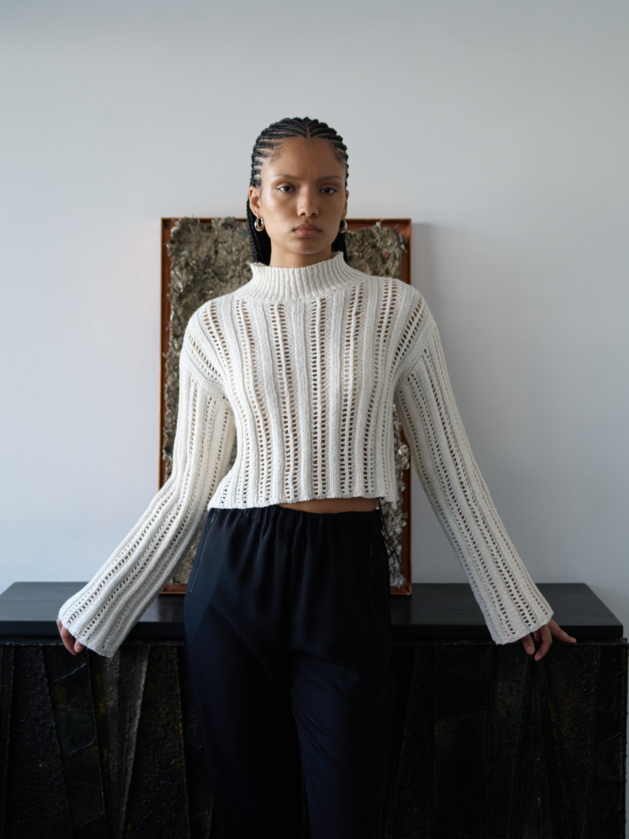The Lousanne Top is a relaxed, open-knit layer crafted for year-round wear. Designed with a breathable weave and slightly cropped length, this top adds texture and ease to any look. A soft, natural drape and modern shape make it an effortless choice for layering over tanks, dresses, or bare skin.